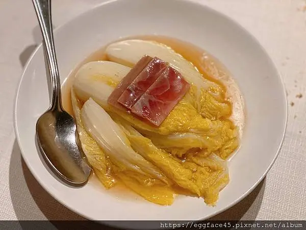 脆嫩的娃娃菜浸泡在火腿煨出的湯汁中,