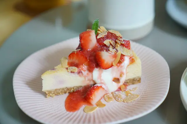 起司蛋糕的派底剛好、裡頭夾著些許的草莓顆粒