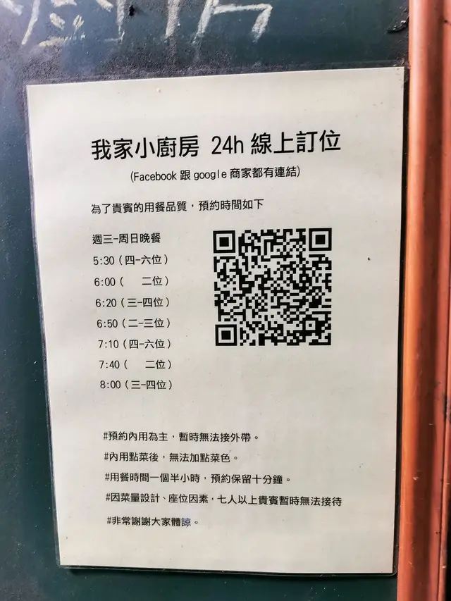 我家小廚房的訂位對應表(不定期在FB開放訂位)