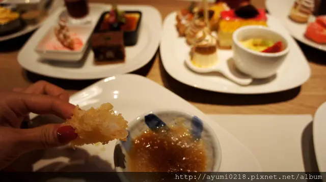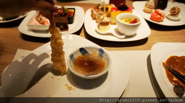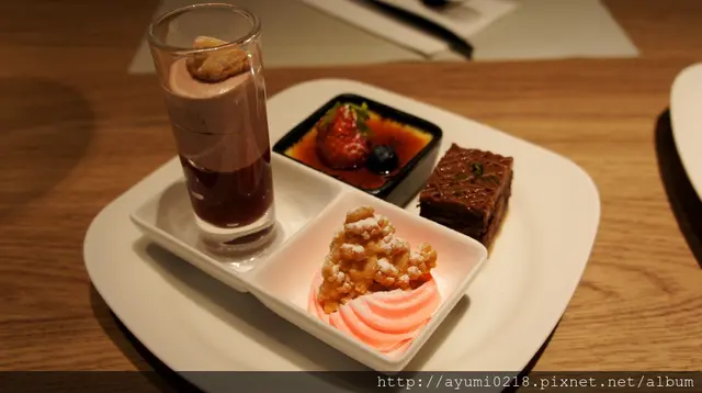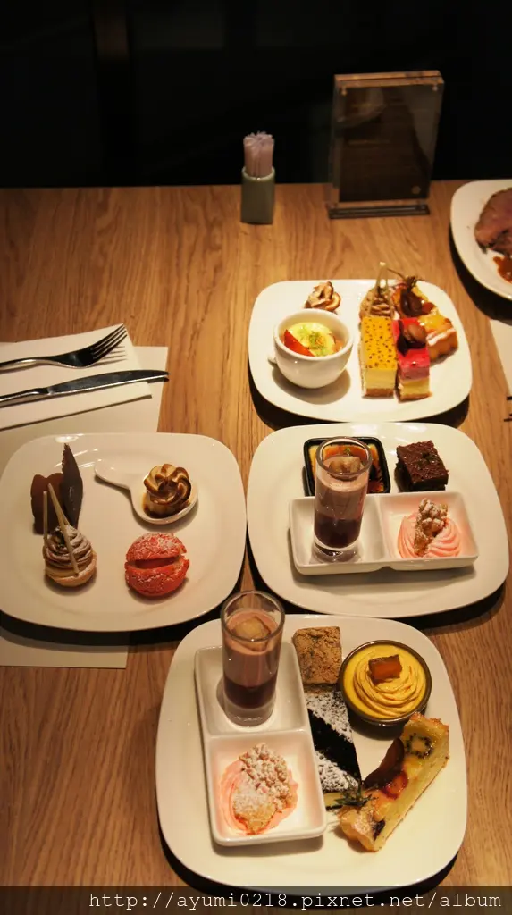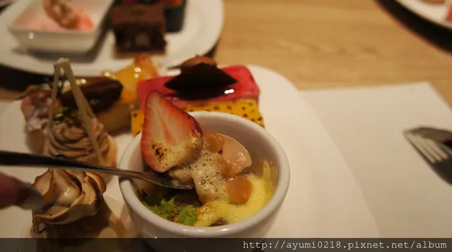 蒙布朗(底下是一口乳酪蛋糕/中間沒有鮮奶油)>焦糖布蕾>黑醋栗幕斯>南瓜抹茶蛋糕布丁>百香果乳酪(酸到整個胃酸分泌...能吃更多的食物)