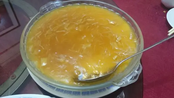 名曰豆腐,但實則是蛋白+鮮奶製成,質感有點像燉奶,香滑可口,上面再用干貝絲和蠔油勾點芡汁。