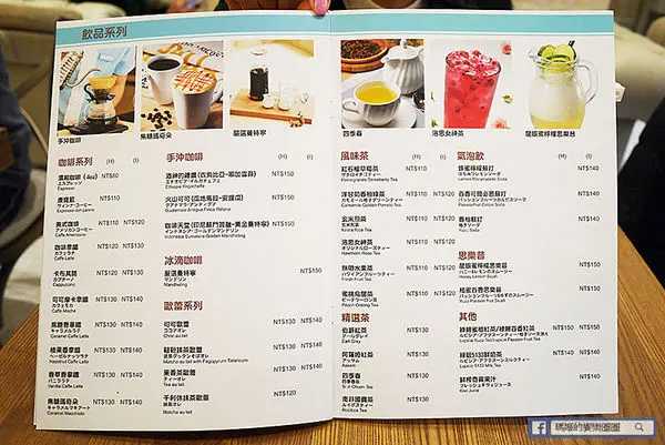 飲料則有手沖咖啡、冰滴咖啡、各式花果茶、氣泡飲、思樂昔等