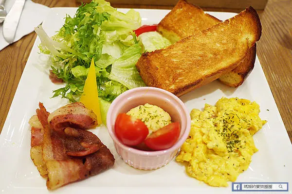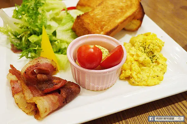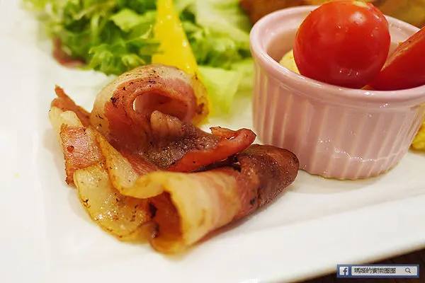 早午餐裡都有一個肉類,有時是香腸有時是培根,今天是培根片,不是我想吃的香腸,因為等餐的時間蠻久的,送上來時只有溫溫的,比較感受不到美味
