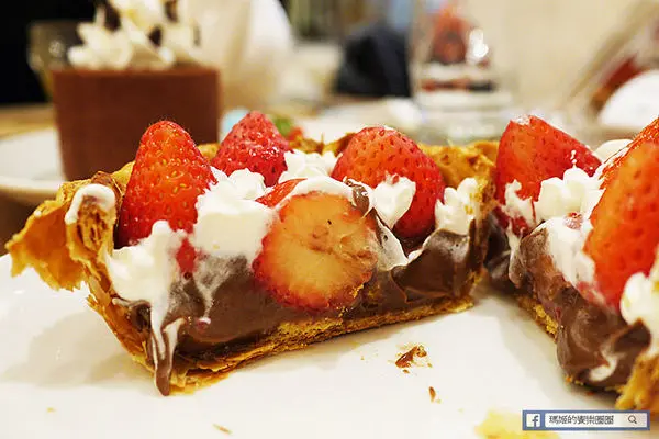 「可可戀人草苺酥塔」200元,以整顆新鮮草莓綴滿整著酥塔,滿滿的大草莓看起來鮮嫩欲滴啊!