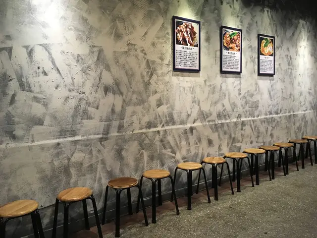 臨牆而立有著一整排的椅子讓等候的客人可以坐著休息