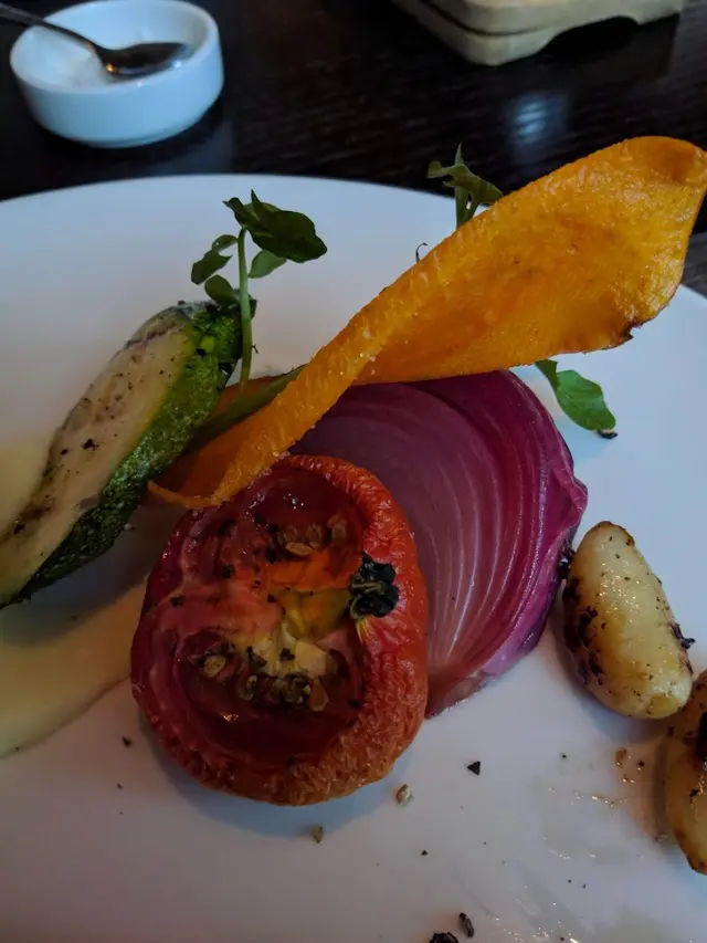 旁邊佐菜的烤蔬菜們色澤艷麗,帶有略焦脆的表皮