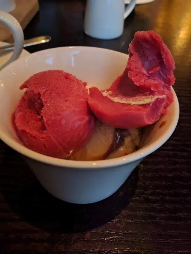 這次我很幸運遇到我最愛的莓果雪酪跟焦糖牛奶