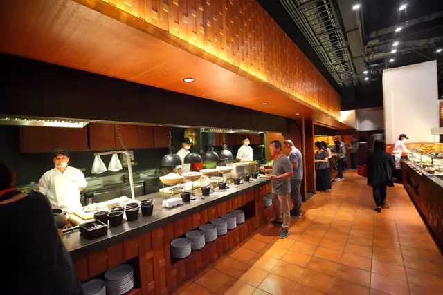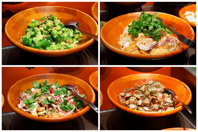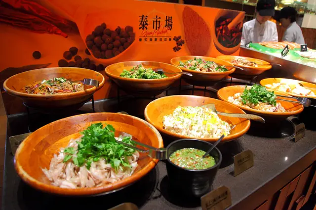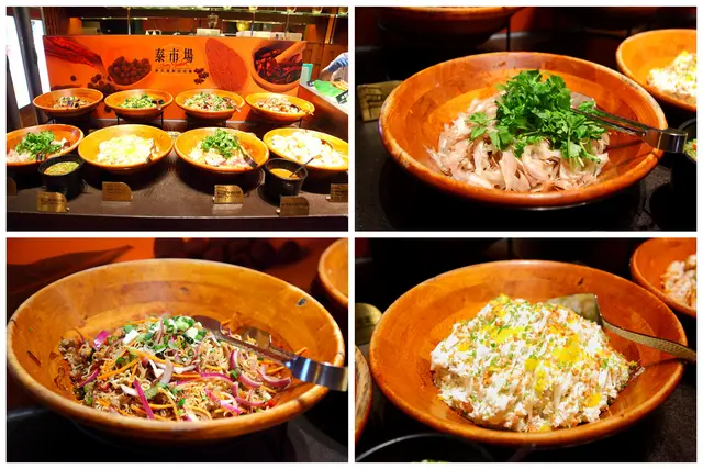 再來是大家最期待的自助餐檯區了!泰市場的自助餐檯可細分成12區,每一區都有屬於自己的料理特色,值得注意的是,泰市場完全使用泰國進口的小辣椒、咖哩、魚露、蝦醬、椰奶等天然佐料以及南薑、檸檬葉、香茅、胡萎、薄荷葉等泰式料理常用的香料來呈現道地的泰式料理菜色