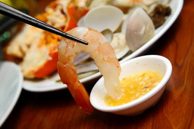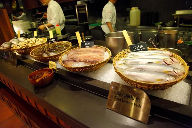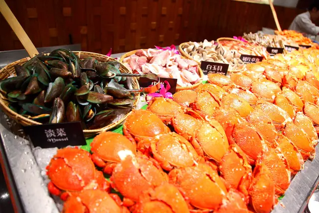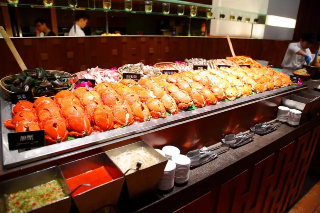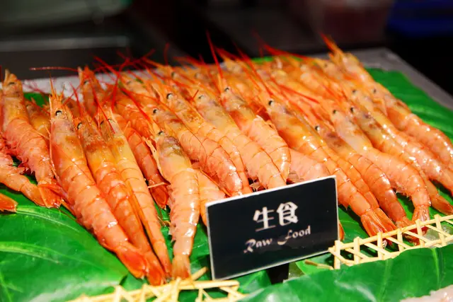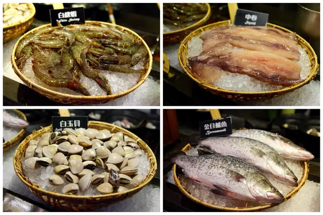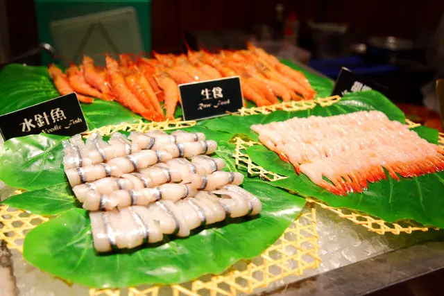 生食區,有天使紅蝦、水針魚及甜蝦,餐檯上也有多種泰式醬料可以自行取用搭配,可以自己組合搭配創意的酸辣生蝦呢