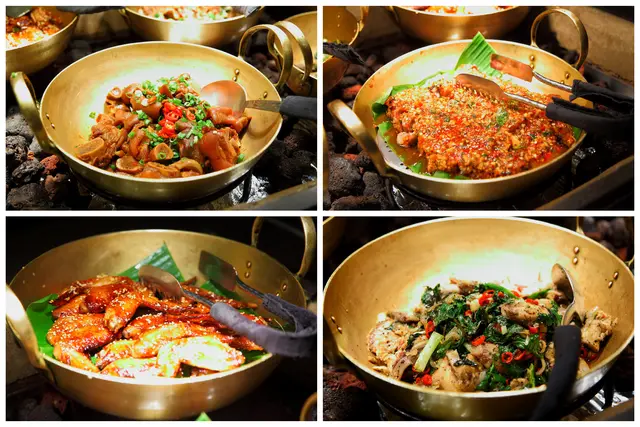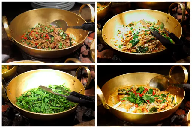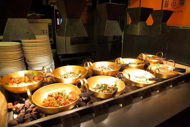 泰式料理的人氣熱炒,月亮蝦餅、金錢蝦餅、蝦醬空心菜、椒麻雞、打拋豬肉、辣炒媽媽麵、泰式炒河粉等經典泰菜,來泰市場一網打盡,不用擔心一次一盤吃不完,自助吃到飽想吃多少拿多少!另外值得一提的是,在銅鍋下的是烤熱的火山石,保溫效果奇佳,隨時都保持著熱呼呼的狀態唷!