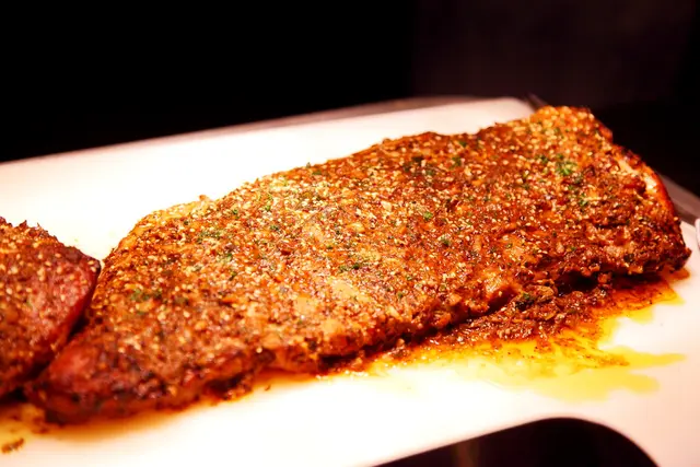 泰北烤豬肉是將整塊梅花肉以香茅、辣椒、胡椒、洋蔥、南薑、蒜、蜂蜜、魚露…等香料一起醃製12小時後,再以220度高溫烤香至熟的料理,高溫燒烤將肉汁整個封鎖在裡面,現點現切,外層的香料賦予梅花豬肉更有層次的風味口感