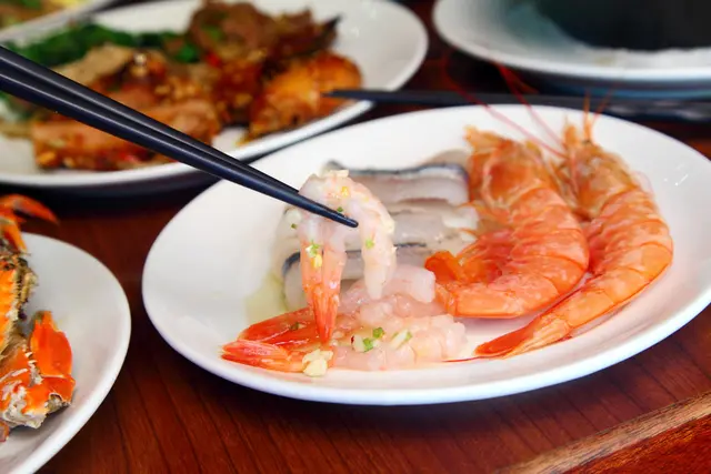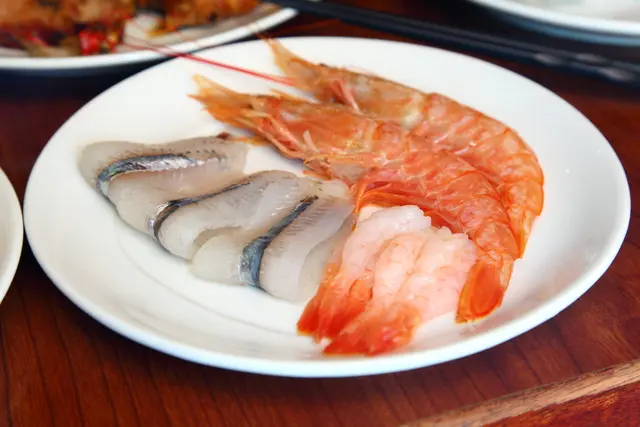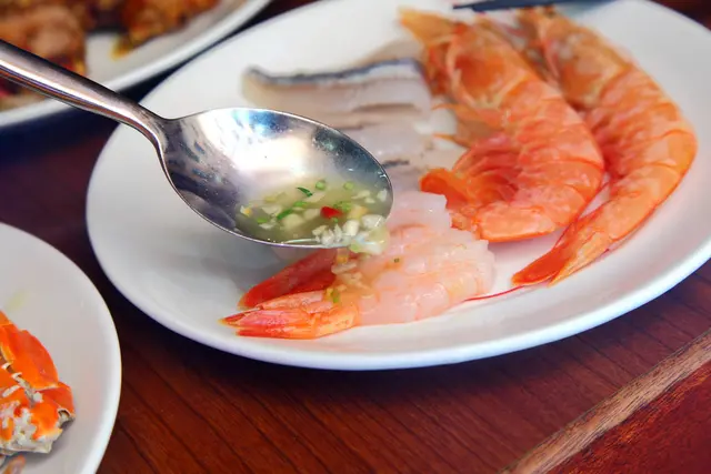 生食的天使紅蝦、水針魚跟甜蝦,可以是自己喜好的口味來做酸辣生蝦,天使紅蝦甜度超高,軟嫩冰涼的口感加上微辣充滿果酸的泰式醬料,比起一般用白蝦做的酸辣生蝦,天使紅蝦更有甜度口感也更滑溜水嫩!