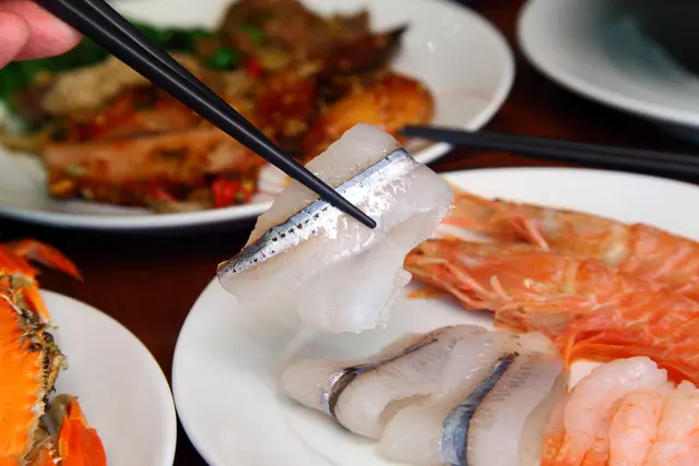 水針魚吃起來口感脆脆的,清爽的油脂感讓人回味再三,泰市場也提供泰式芥末醬,不似日式芥末醬那般嗆辣,更能襯托出水針魚的鮮