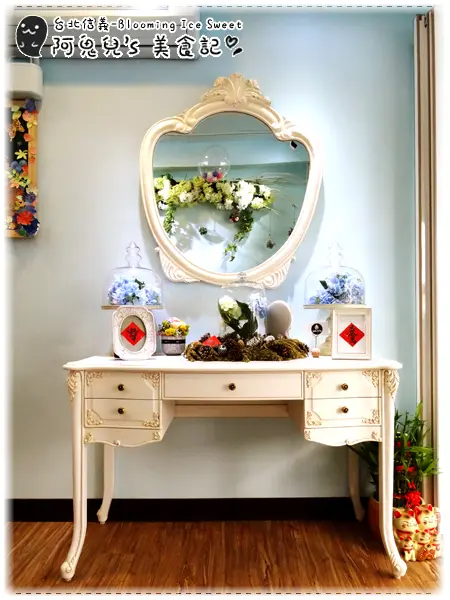 白色的梳妝台也增添不少歐式風格的氣息,也展現了店家的特色