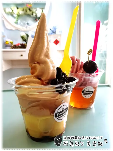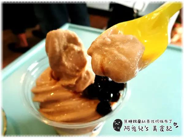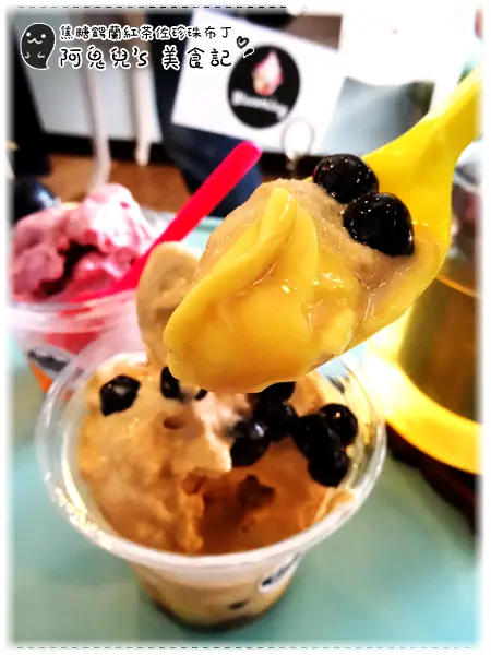 老闆說霜淇淋配上布丁和珍珠一起吃更好吃,甜蜜滋味卻不膩口