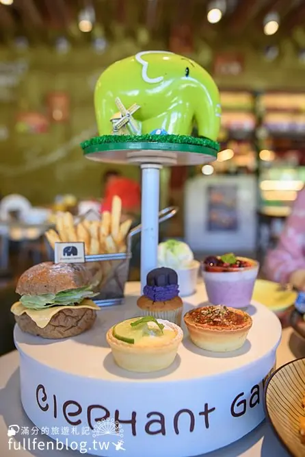 旋轉大象嘉年華套餐有小漢堡和各式糕點