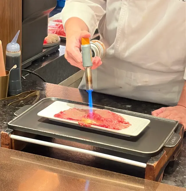 假日限定品項!現場炙燒比臉還長的和牛握壽司,吃起來油潤又香,超美味!