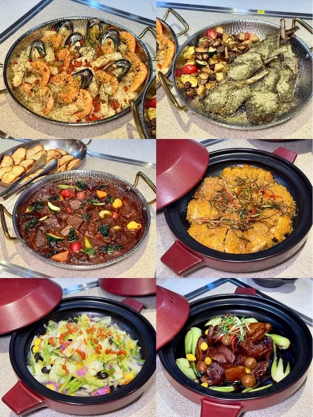 ▼台式經典外婆紅燒肉、法式紅酒燉和牛頰與菲律賓蒜香海鮮烤飯…等,