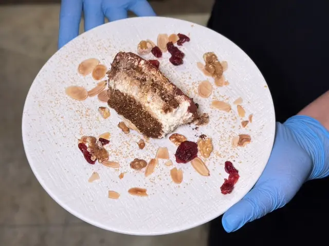 ▼平日供應的是提拉米蘇,上桌時會灑上金粉,並佐以蔓越莓乾、杏仁片及核桃點綴,吃起來味道濃郁、苦甜平衡,我好愛!