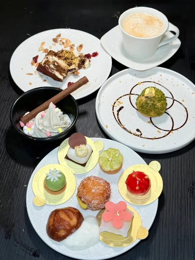 有青葡萄香堤塔、榛果巧克力蛋糕與焦糖爆米花,以及奶油年糕、香草甜甜圈…等,精緻甜蜜又好吃。