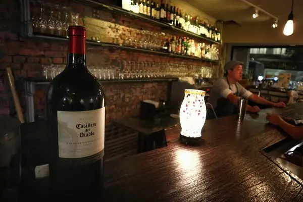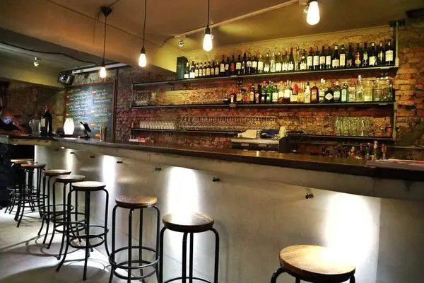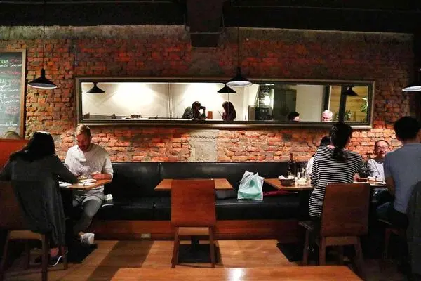 裸露斑駁的紅磚牆與昏黃的燈光,營造出復古風餐酒館的氛圍,空間比起一樓座位數較多,有雙人座、四人座也有多人座位,