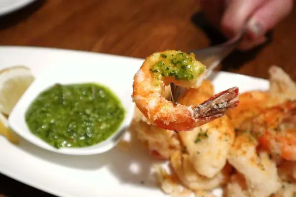 薄脆鮮嫩的海鮮沾上店家自製香菜莎莎醬,再擠上一些檸檬汁一起入口,多了一分檸檬酸爽的清香滋味,也有去油解膩的功效。