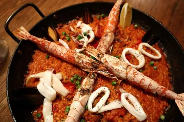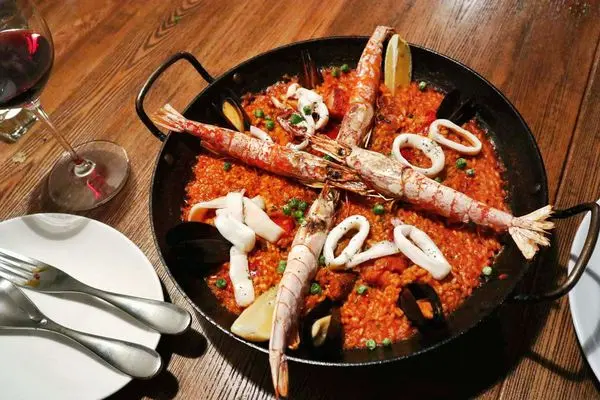 西班牙海鮮飯是由的Bomba圓米熬煮吸收番紅花海鮮高湯,需耐心等候這道經典的美味,