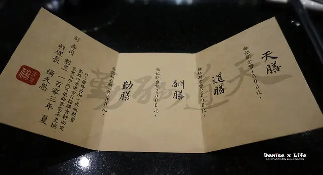 目前店內推出的套餐共有『天』『道』『酬』『勤』四個等級,分別為1500元、2000元、2500元及3000元