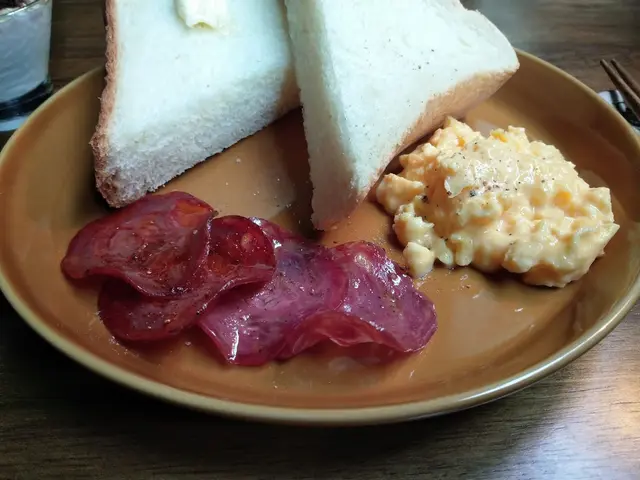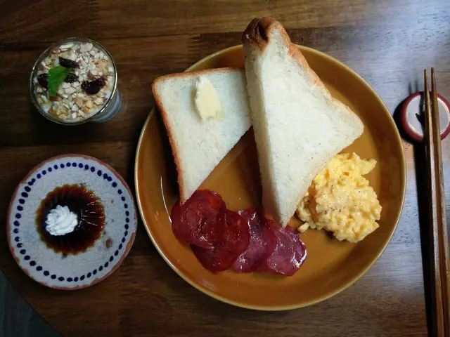 整個套餐主食包含了湯種吐司、炒蛋、義式火腿、冰釀凍跟優格
