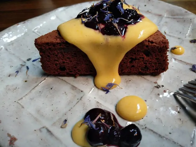 蛋糕體本身比較乾一些,因此建議與淋醬跟藍莓一同享用