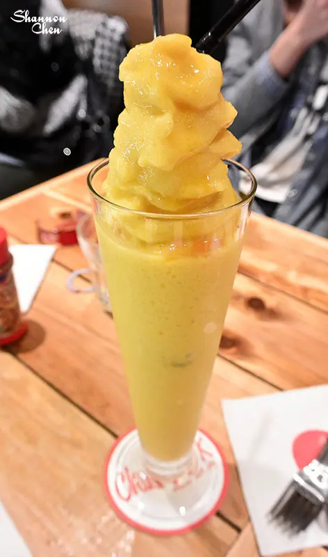 我想大家都知道女孩愛吃冰,鎖以我們這次點了個套餐選的飲品就來個"芒果冰沙"