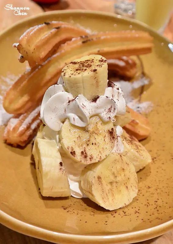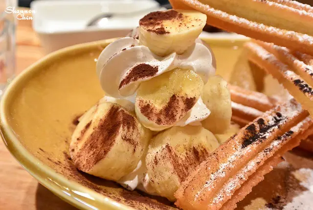 香蕉部份就是香香甜甜且是新鮮的!!我們喜歡這樣搭配著品嘗吉拿棒,另外我也喜歡一邊沾著鮮奶油、霜淇淋一起品嘗,吉拿棒帶著奶香讓人也停不下口阿!!