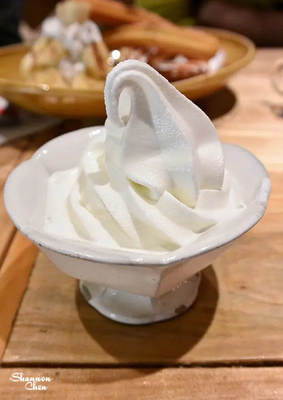 我們對於這巧克力醬覺得不錯不會很甜膩,且帶著一點點的苦香味,不過我個人是喜歡沾取鮮奶油、霜淇淋勝過沾巧克力醬,鎖以就被我拋到一旁去了!!