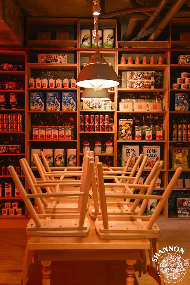 特色就是從這開始道地下室,整牆的食物、盒子,整體感覺很豐富讓人喜歡