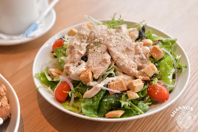 這份沙拉我覺得挺不錯的,因為雞肉的口感還算軟嫩,生菜和醬搭配的剛剛好很順口,一直都很喜歡沙拉所以吃的也蠻開心