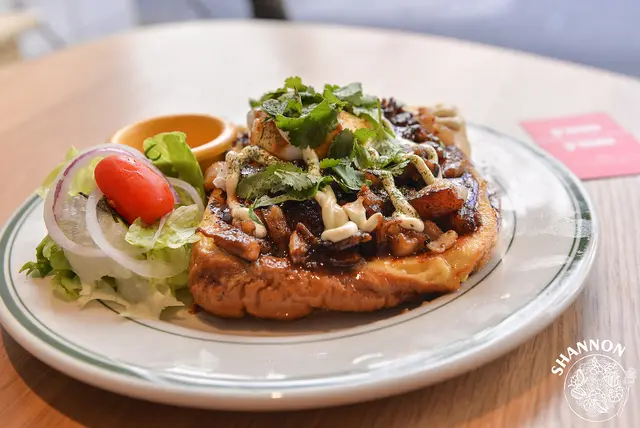 看起來非常的特別,不過因為口味很重而法式吐司也很容易吸取醬汁,所以吃一吃會覺得有些膩口了!多人分享就比較不會有這樣的問題呦,而且確實很特別的口味,喜歡嚐鮮的朋友可以試試!