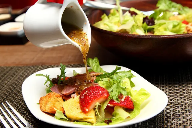 爽脆鮮甜,果香四溢,相當豐富的層次口感,微酸的油醋醬也開啟夏日炎炎食慾不振的胃口
