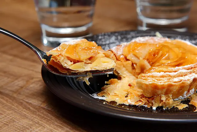 蘋果派是使用新鮮蘋果糖煮,添加肉桂做成肉桂蘋果