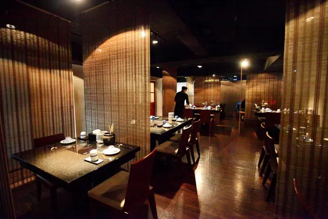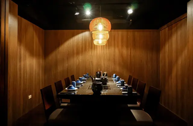 隨著服務生的腳步引領,我們走進囍聚的用餐區域,室內用餐空間延續的灰黑色調的裝潢質感,溫暖的黃光透過隔間竹簾在室內呈現的光影變化,氣氛營造低調沉靜,不由得讓人輕聲細語,專注於享用眼前澎派的鍋物料理呢