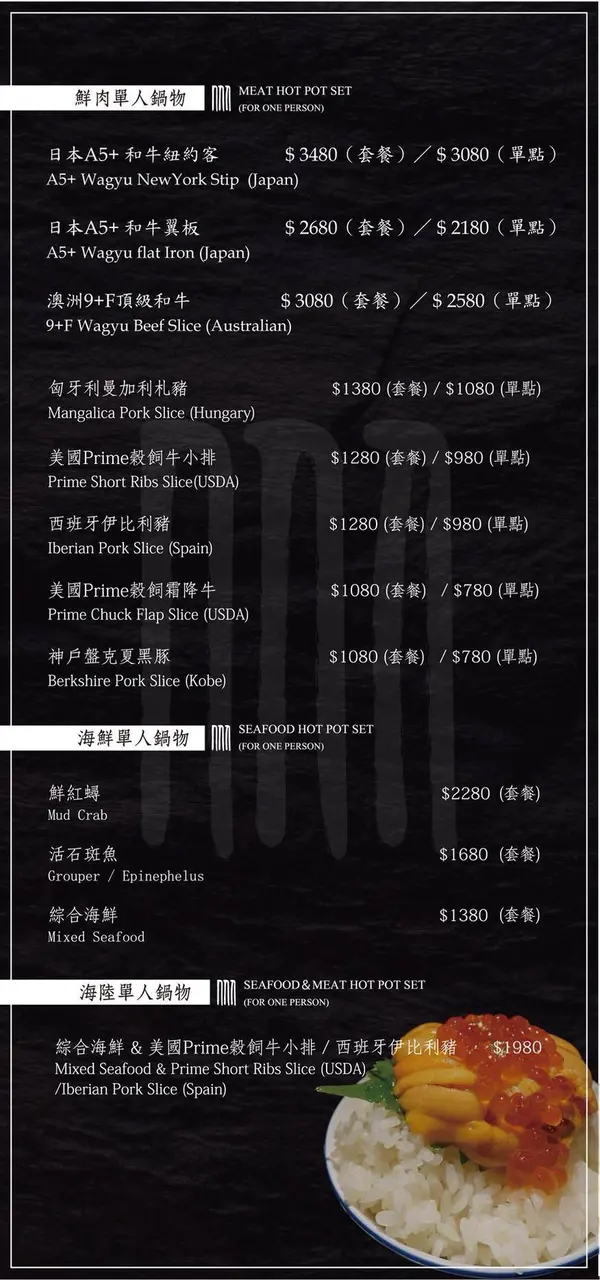 鍋物也有無菜單,高檔食材輪番上陣