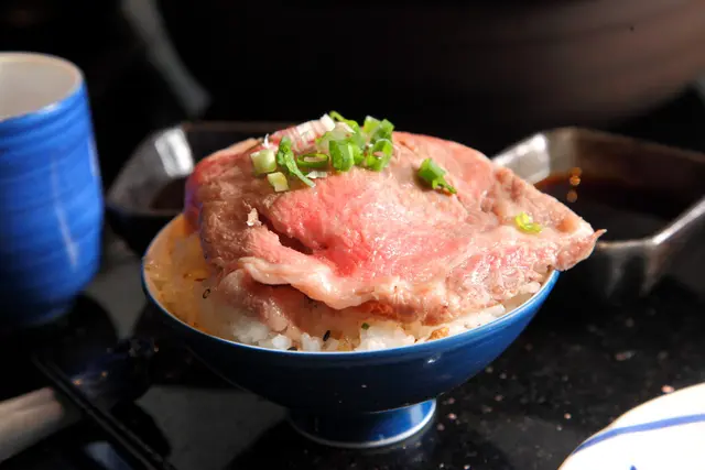 咬咬將和牛鋪在台梗九號的香米飯上,任和牛油脂肉汁滲入飯中,超高貴的牛肉蓋飯呀!