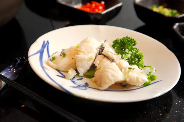最厲害的還是這肉質晶瑩剔透,排成大扇形的龍膽石斑,等等我一定趁朋友不注意偷偷拿一片來試試(竊笑)