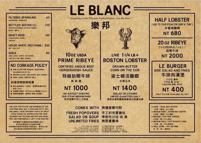 存在口袋名單好久的 Le Blanc 樂邦牛排館