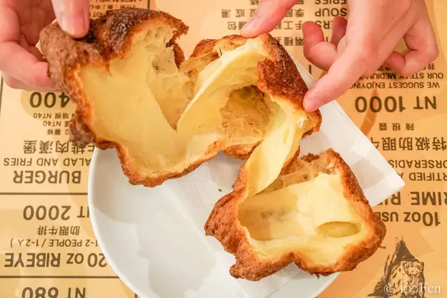 剝開稍帶韌性的麵包體,原來裡面是空心的,