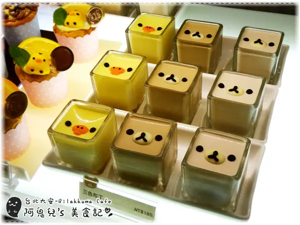 有著拉拉熊表情的三色布丁讓我好心動~不過我還是選了生起司蛋糕