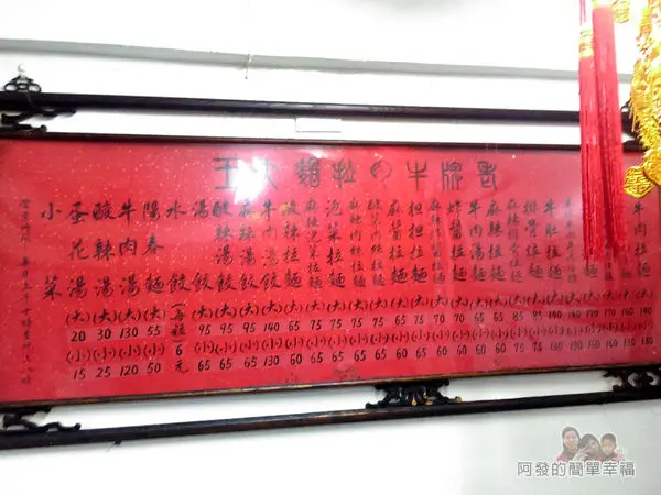 連牆上價目表,也是用具傳統中國風味的紅紙加上毛筆書寫,再用木框裱起。
