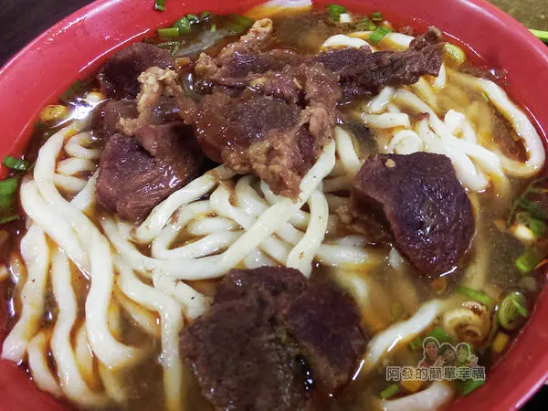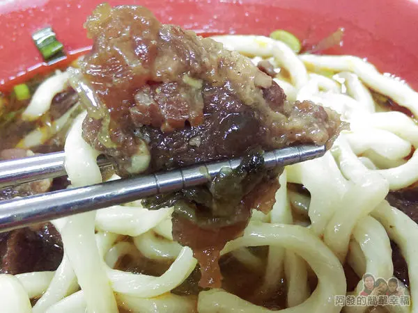 使用新鮮本土黃牛肉來熬煮的牛肉塊,除了外觀熬煮至入色且厚實的模樣令人垂涎外,一口咬下,那湯汁與肉脂香在口中散了開來,真是十分味美。另牛肉口感軟嫩,但又因每塊肉還帶有些肉筋所以不失其嚼勁,真是越嚼越有味,是阿發偏愛的口感,加上牛肉不算少,對阿發來說更是吃得過癮!