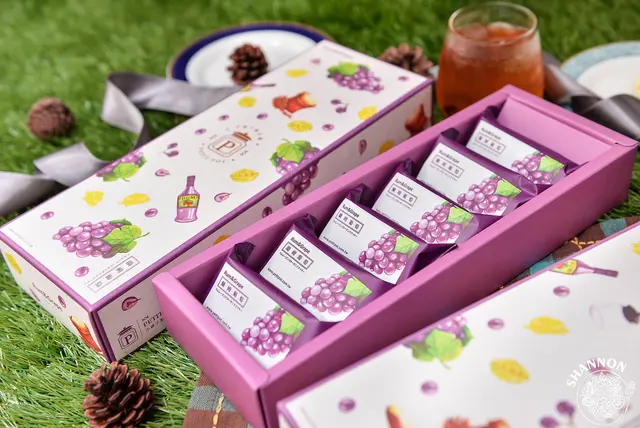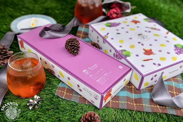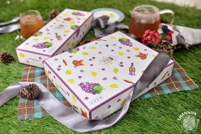 今天收到一小一大盒分別為6入及10入,外包裝是活潑可愛的插畫圖案,紫色的滾邊讓禮盒看起來更別緻,當做伴手禮也非常的適合!