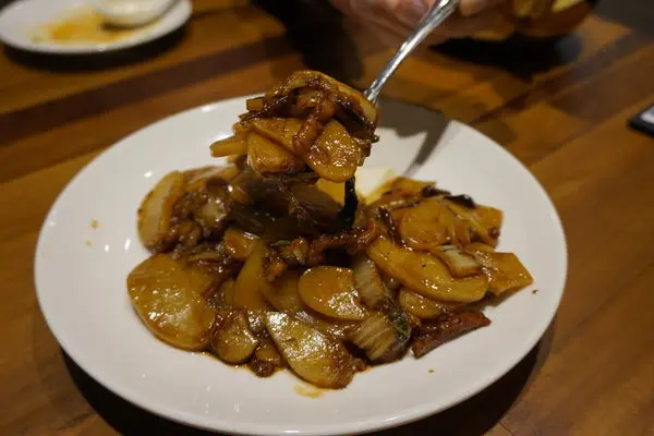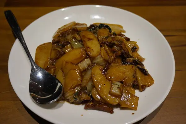 想說還是要點個主食來填飽肚子,因此點了上海炒年糕($180)。