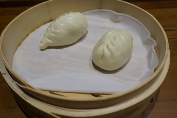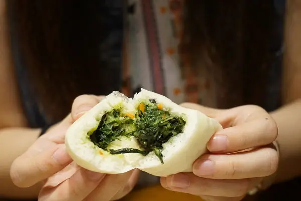 兩顆白泡泡葉子狀的蔬菜包長得好可愛呀, 師傅的捏工真是到位!!!